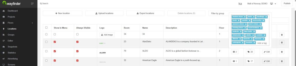 In 3D Wayfinder Admin, tags can be added to every location. This feature should not be seen as a small detail. Stronger location search can be built with well-added tags. Better search results can also be delivered to visitors with less effort. The importance of 3D Wayfinder tags can be seen most clearly in shopping centers. In these projects, stores are often searched by product type. Exact brand names are not always remembered by visitors. Because of that, general keywords are usually entered into mall guide search. A visitor may search for dresses, shoes, or jackets. Another visitor may search for cosmetics, electronics, or coffee. If those terms have been added as location tags, correct results can be shown faster. The search engine can then be supported with better keyword coverage. As a result, the right location can be found more easily.